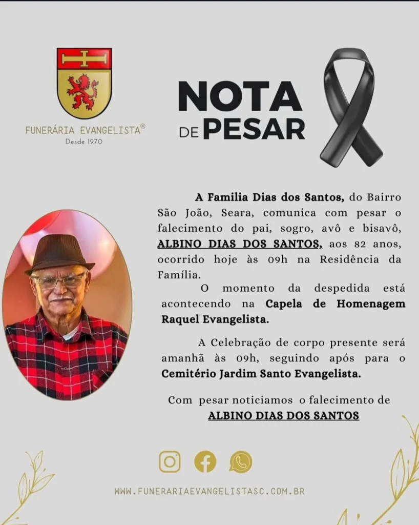Falecimento: ALBINO DIAS DOS SANTOS