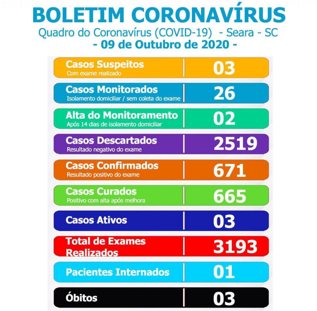 A secretaria de saúde de Seara divulgou na manhã desta sexta-feira, 09, uma nova atualização dos casos de coronavírus no município.