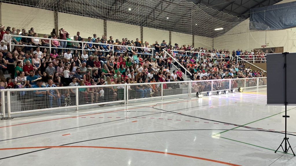Casa cheia para as apresentações e receber o Papai e Mamãe Noel (Foto: Belos FM)