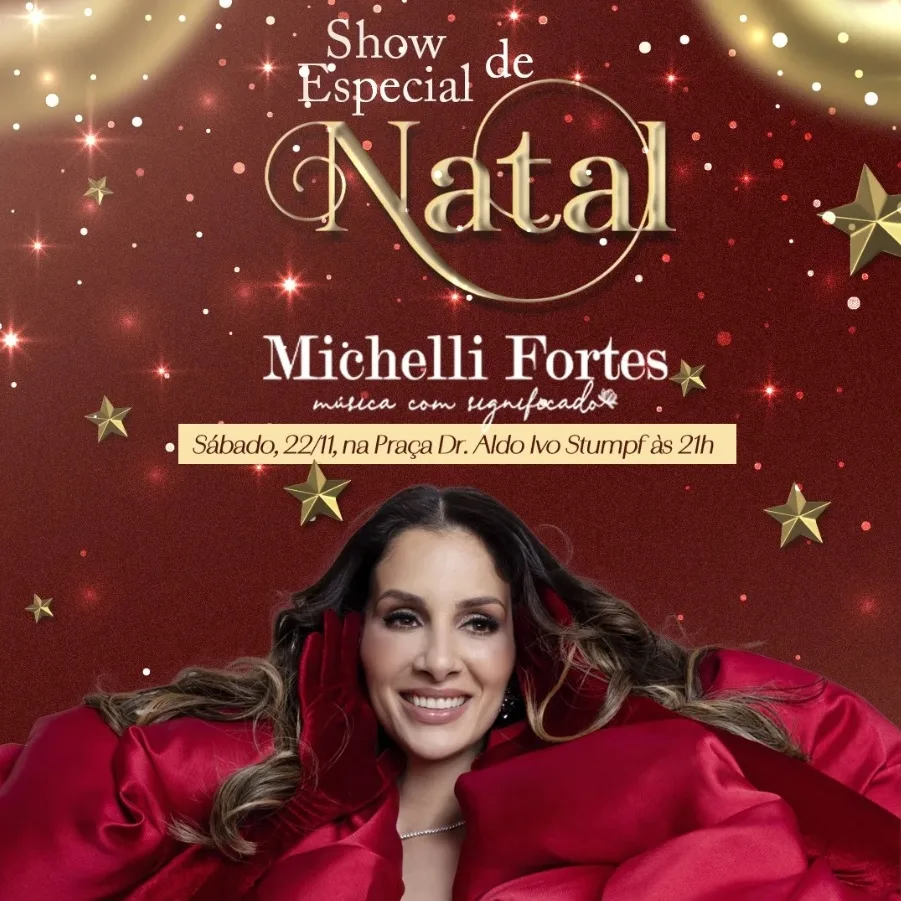 A abertura oficial do Brilha Itá 2025 acontecerá neste sábado, 22 de novembro, no Bosque do Papai Noel a partir das 19h30, com a chegada do Bom Velhinho e acendimento das luzes natalinas. Em seguida, haverá show musical com Michelli Fortes e Banda, na Praça Dr. Aldo Ivo Stumpf, a partir das 21h.