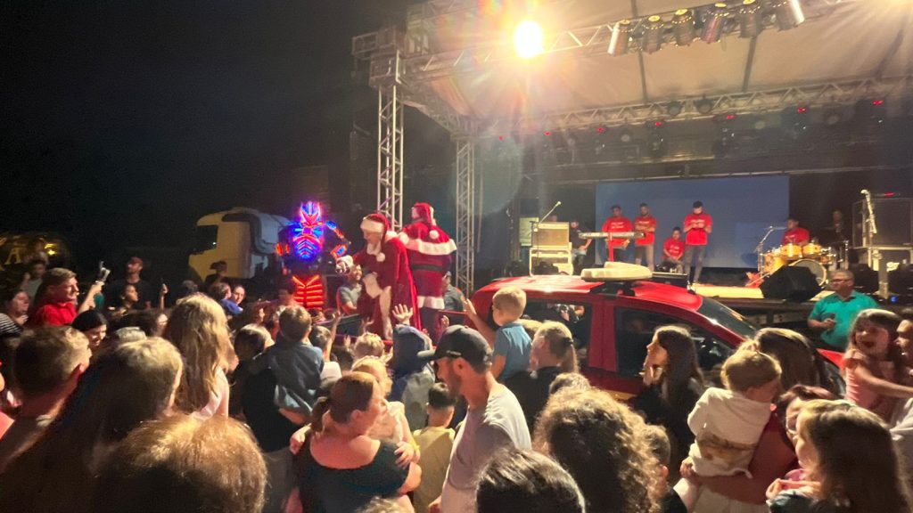 A programação seguiu para a praça Anita Garibaldi com o acendimento das luzes de Natal e a chegada do Papai e Mamãe Noel.