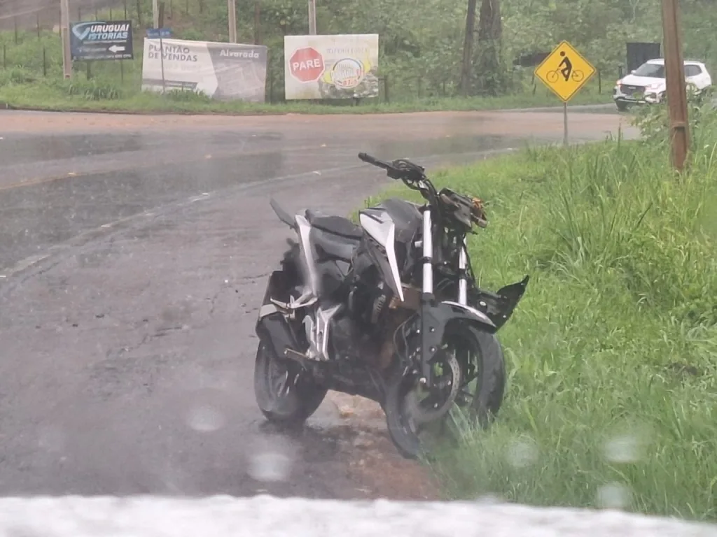 A ocorrência envolveu uma motocicleta Honda/CB 300, com placas de Tunápolis, ocupada por um jovem de 17 anos e uma adolescente da mesma idade.