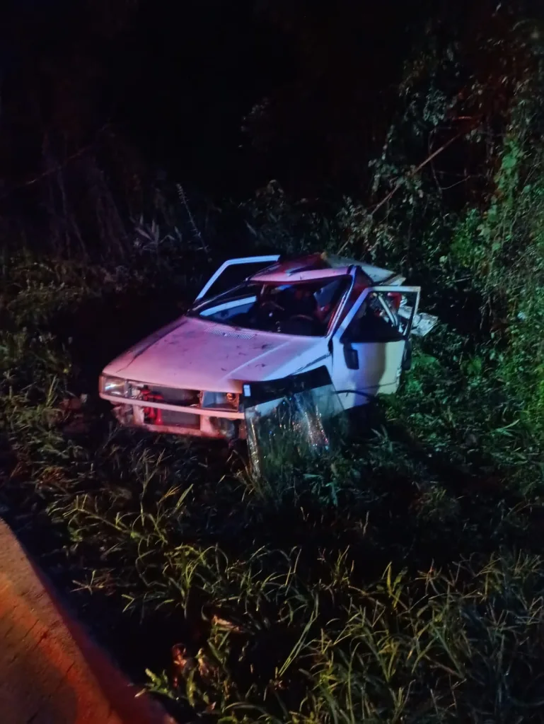 Uma colisão traseira deixou cinco pessoas feridas na noite do sábado, 10 de janeiro de 2026, na BR-282, no distrito de Juvêncio, Linha Guabiroba, interior de Saudades.