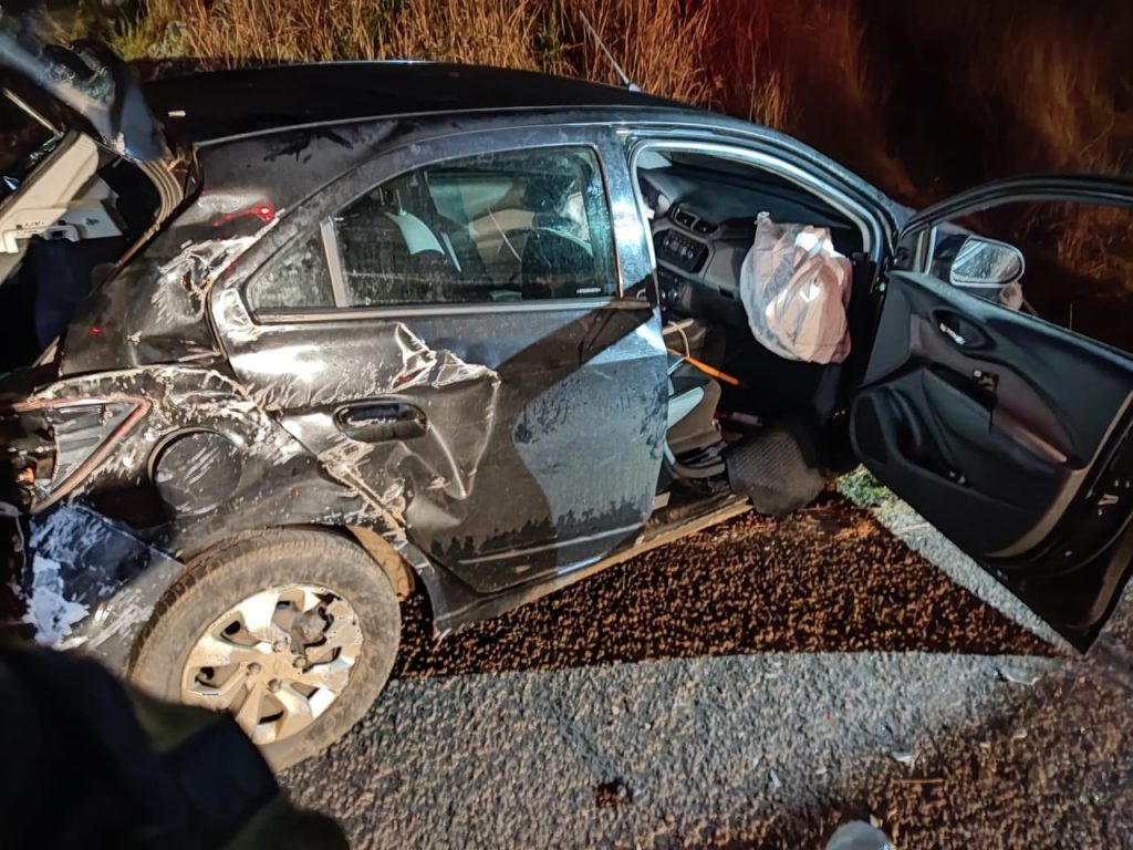 Um acidente no Distrito de Juvêncio, em Pinhalzinho, deixou o condutor de um GM Onix preso às ferragens. O fato ocorreu às 22h40 do sábado, 18.