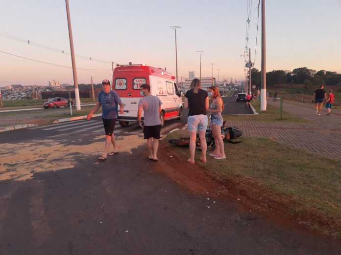 Segundo informações dos socorristas, atenderam o condutor da motocicleta um homem de 26 anos se queixava de dores lombares e apresentava suspeita de fraturas em uma das pernas e uma mulher de 21 anos.