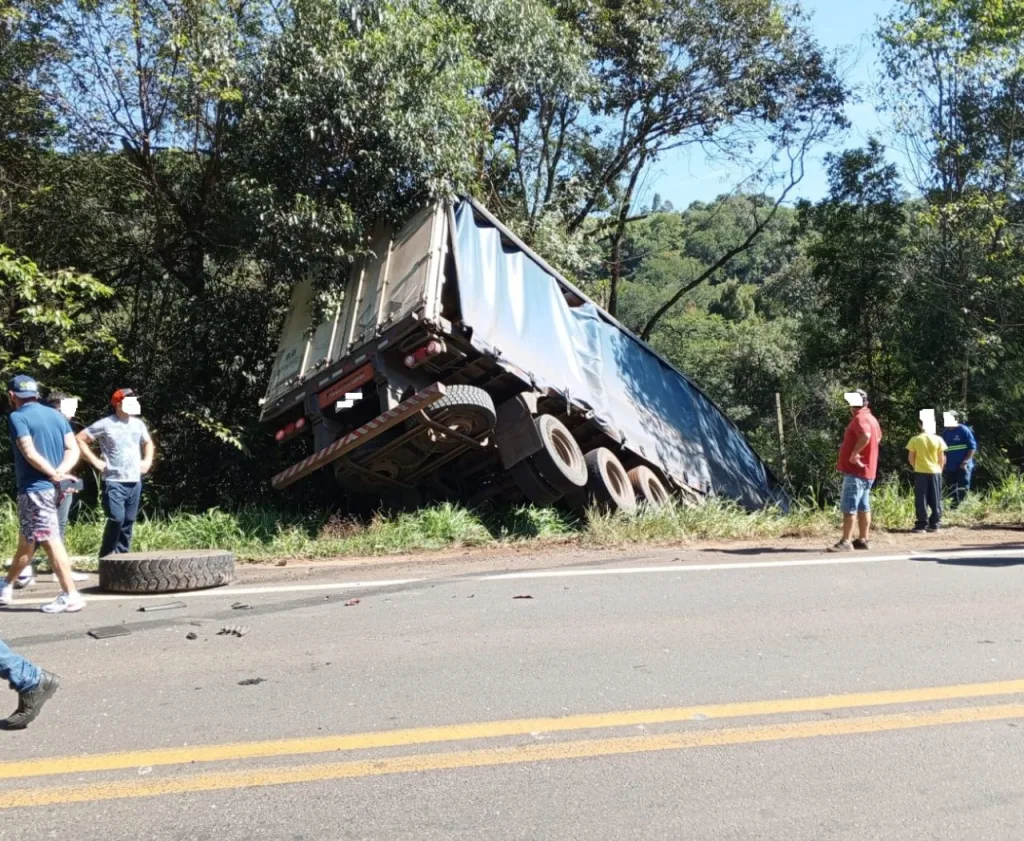 Um grave acidente de trânsito envolvendo um caminhão e uma carreta foi registrado no final da manhã desta quinta-feira (23) na BR-153, na ponte sobre o Rio Jacutinga, nas proximidades da comunidade de Barra Seca, entre os municípios de Concórdia e Irani.