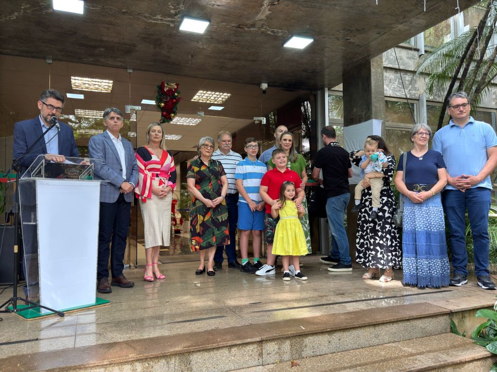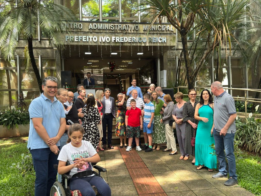 Na manhã deste sábado (14), em solenidade prestigiada por secretários municipais e lideranças políticas e empresariais, o prefeito de Concórdia Rogério Luciano Pacheco descerrou a placa que denomina o Centro Administrativo Municipal Prefeito Ivo Frederico Reich, homenagem ao legado político e empresarial do ex-prefeito.