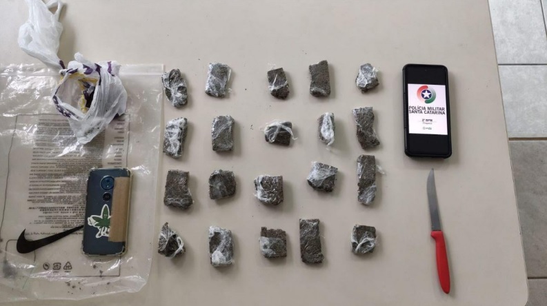 Ao ser questionado pelos policiais se tinha mais droga na residência, o adolescente, bastante alterado, informou que tinha apenas um pouco em cima do criado-mudo ao lado da cama. Porém, em uma das gavetas do mesmo móvel foi localizado uma sacola plástica com várias porções fracionadas de substância análoga a maconha, totalizando 248,70 gramas. Sendo assim, ele foi conduzido à Central de Plantão Policial.