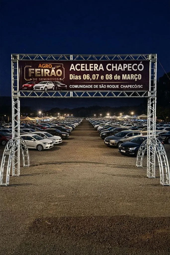 Chapecó entra no ritmo das grandes oportunidades com a realização do Agro Feirão de Seminovos, que acontece de 6 a 8 de março, no estacionamento da Comunidade de São Roque. O evento promete aquecer o setor automobilístico e reunir consumidores de toda a região.