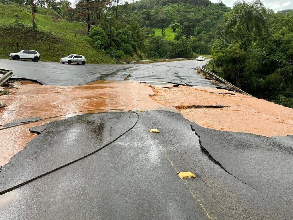 Asfalto ficou danificado na SC-155 em Linha Bernardi