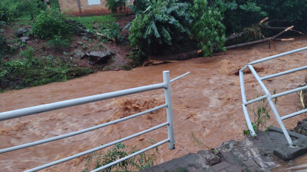 Pinguela da rua Beira-Rio foi arrancada com a força da água