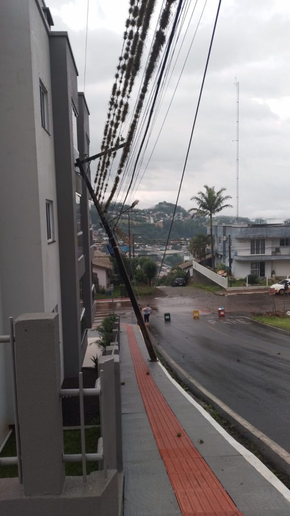 Poste escorado em prédio na rua Itália, bairro das Nações