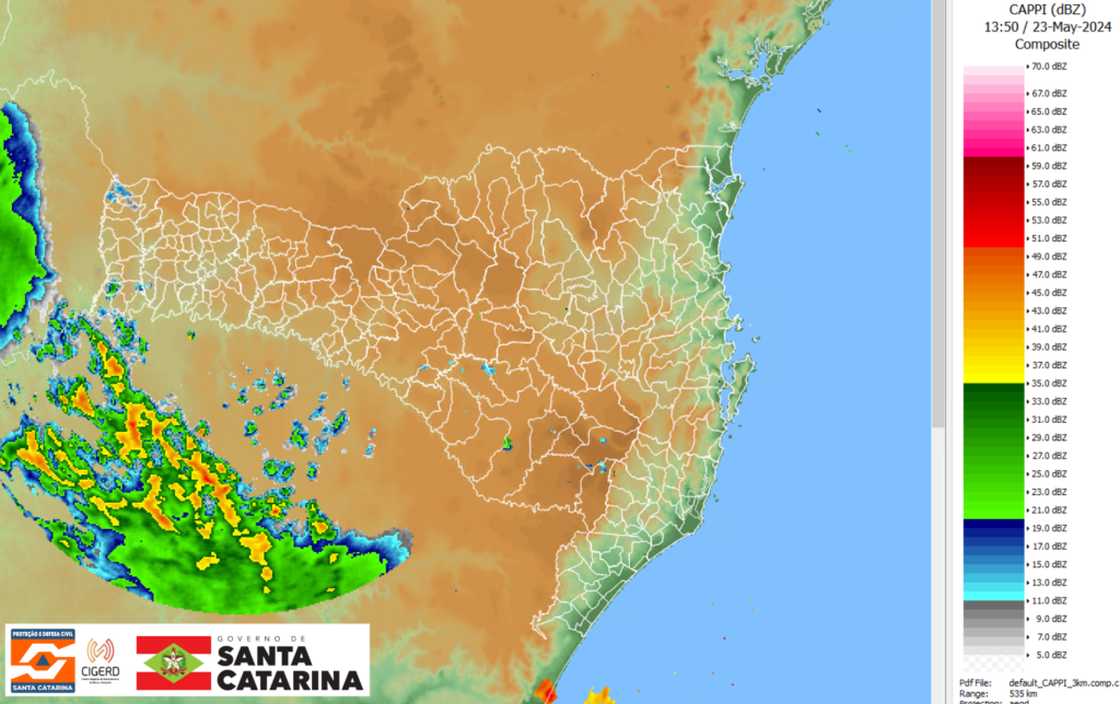 Imagem da composição dos radares meteorológicos de SC. Fonte: Secretaria de Estado da Proteção e Defesa Civil de Santa Catarina