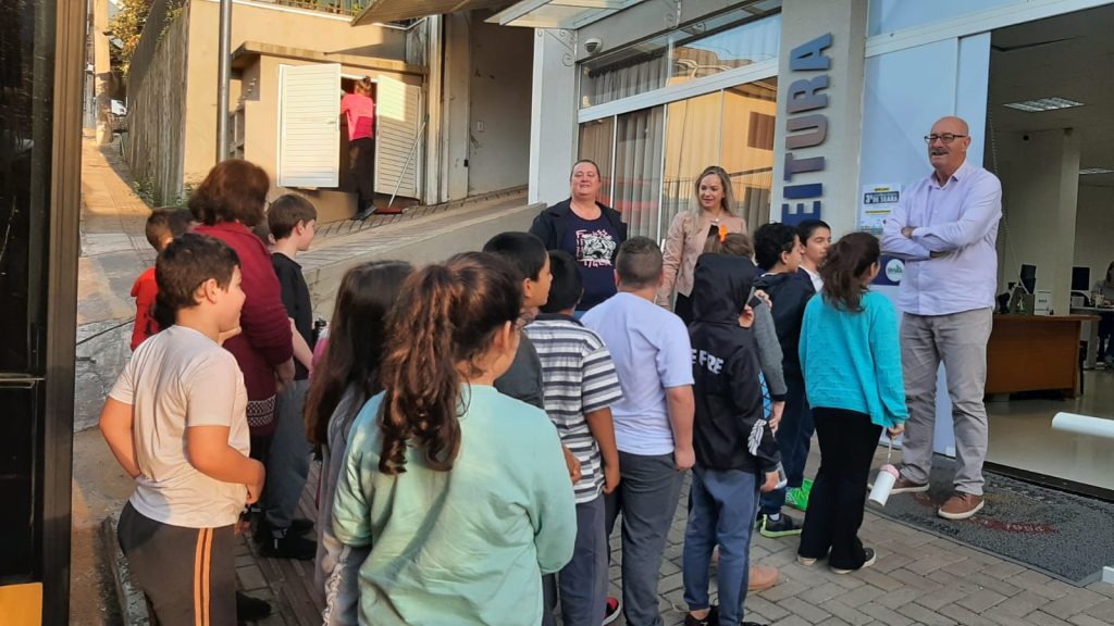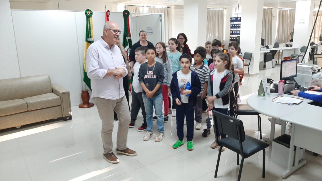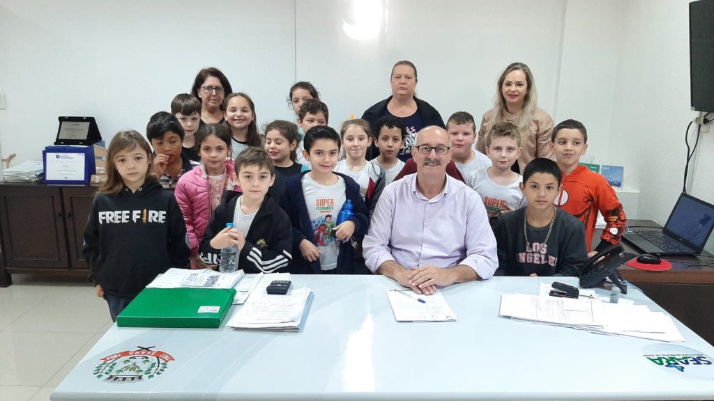 Os alunos do terceiro ano da Escola Núcleo Rosina Nardi visitaram a Prefeitura de Seara na manhã desta sexta-feira, 14. A visita é sobre um estudo sobre os três poderes: Executivo, Legislativo e Judiciário.