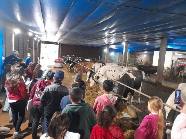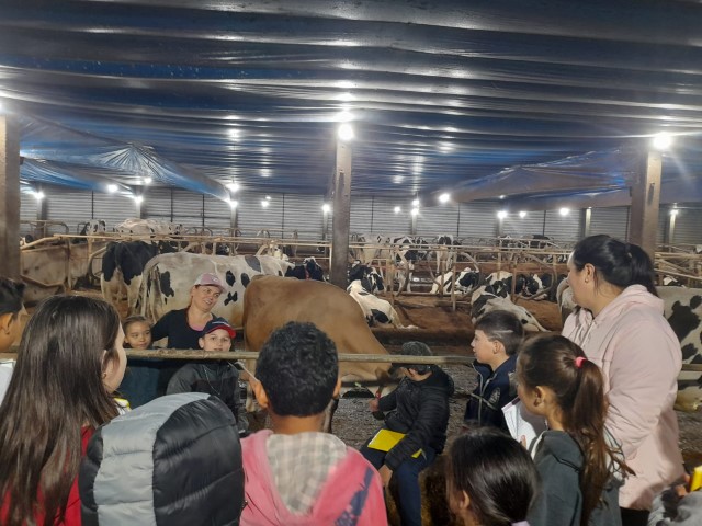 Nesta semana, os alunos da 4ª e 5ª série da Escola Núcleo Nova Teutônia conheceram a propriedade da família de Fritz Wehebrink, grande produtora e referência no plantel de ordenha robotizada.