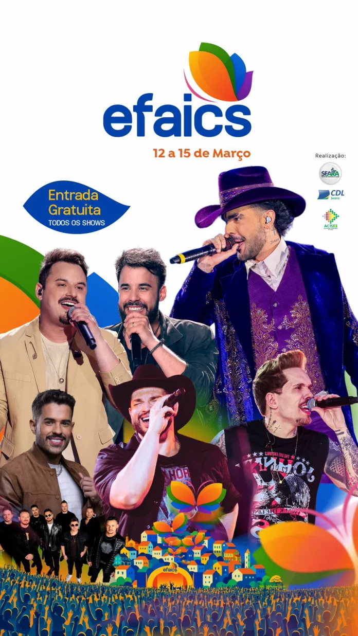 E no domingo, 15 de março, encerramento da Efaics, um artista que lidera as paradas musicais em todo o país: Luan Pereira.