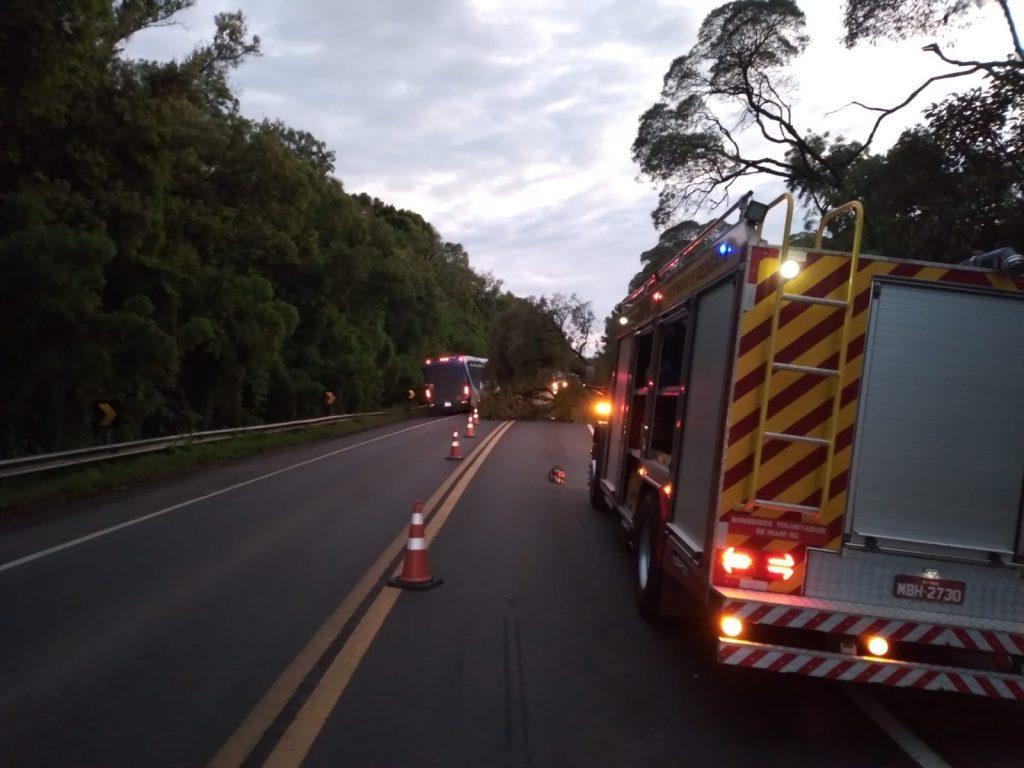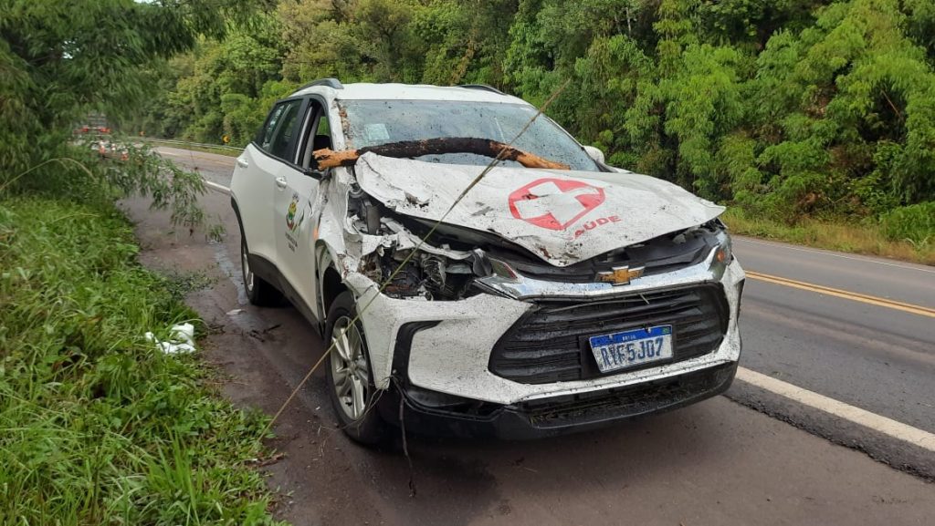 O Corpo de Bombeiros Voluntários de Irani foi acionado às 5h15 desta quarta-feira (18), para efetuar atendimento a um acidente de trânsito envolvendo carro da saúde de Ipumirim e uma árvore que caiu na pista atingindo o veículo.
