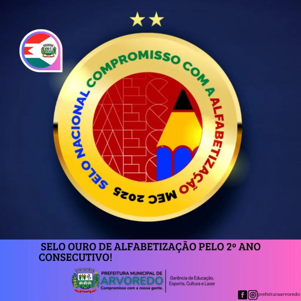 O município de Arvoredo reafirma sua posição de destaque na área da educação ao conquistar, pela segunda vez consecutiva, o Selo Ouro de Alfabetização, concedido pelo Ministério da Educação (MEC). O reconhecimento comprova o compromisso da gestão municipal em garantir que todos os estudantes estejam alfabetizados até o final do 2º ano do Ensino Fundamental.