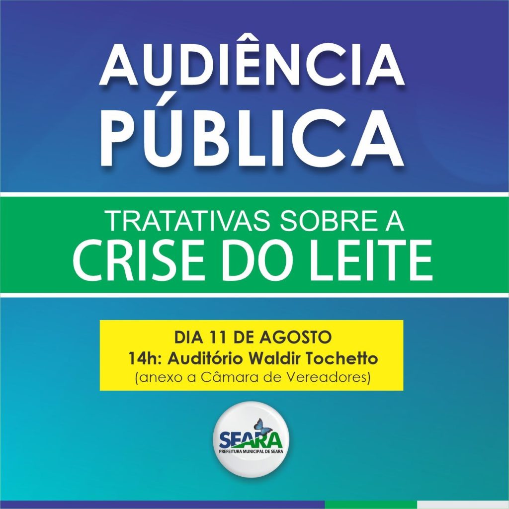 A Audiência Pública para discutir a situação dos produtores de leite do Estado será nesta sexta-feira, 11, em Seara.