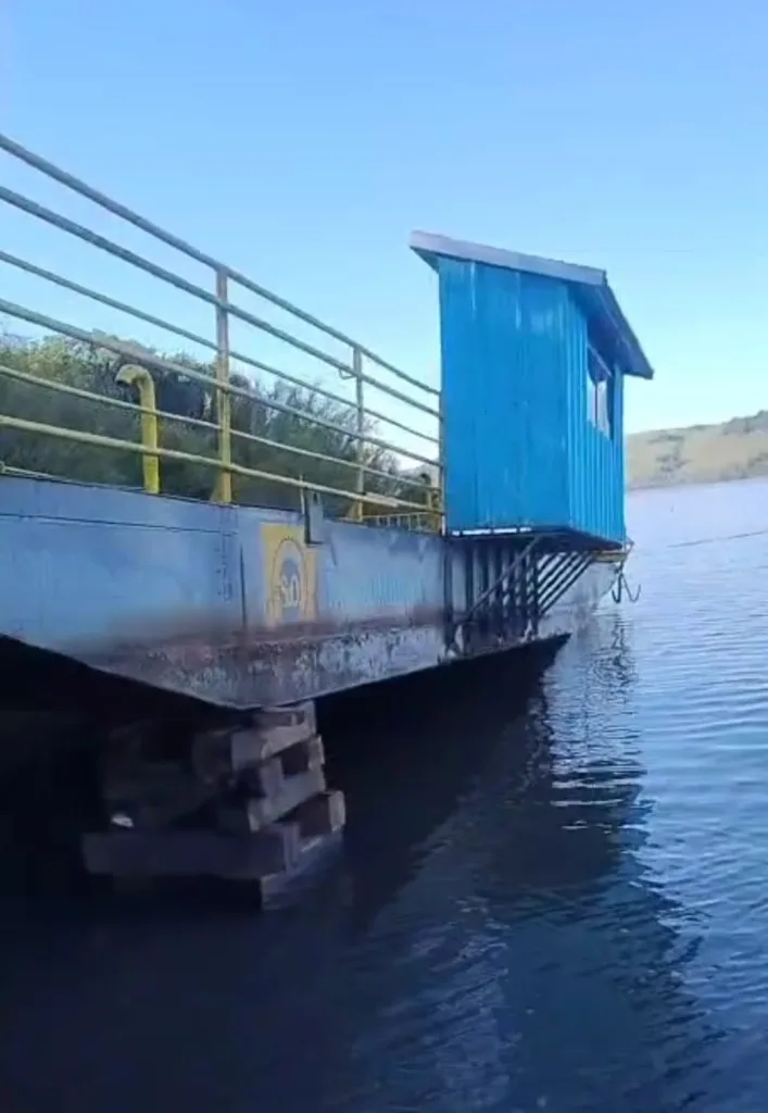 A balsa que realiza a travessia sobre o Rio Uruguai, ligando Concórdia (SC) a Mariano Moro (RS) pela comunidade de Sede Brum, está temporariamente fora de operação devido a trabalhos de manutenção.