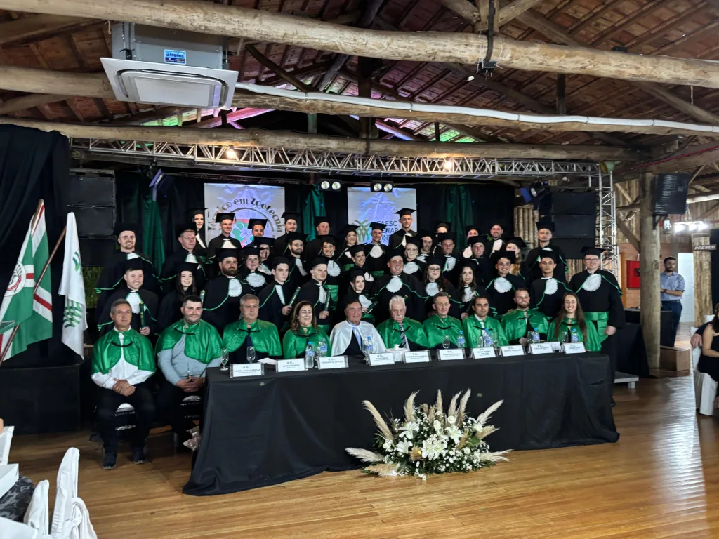 Eles falam sobre a formatura do curso Técnico em Zootecnia pela Faesc e Senar, Polo de Seara, formação por meio da Rede E-Tec. O evento foi no CTG Seara e Pampa no último sábado, 21.