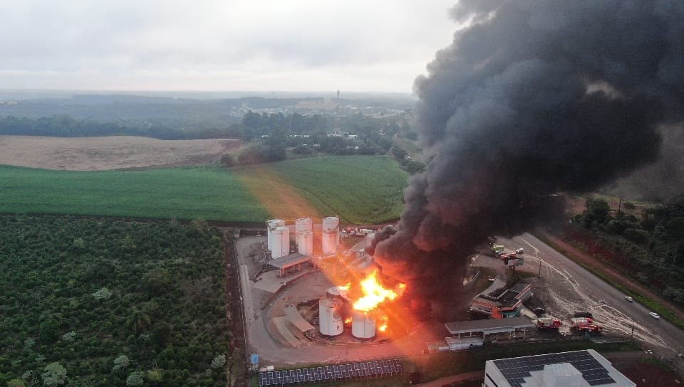 Nesta terça-feira, dia 14, após 24 horas da ocorrência de incêndio no reservatório de combustível em Chapecó, as equipes seguem na atuação para evitar a propagação da situação, bem como para combater as chamas.