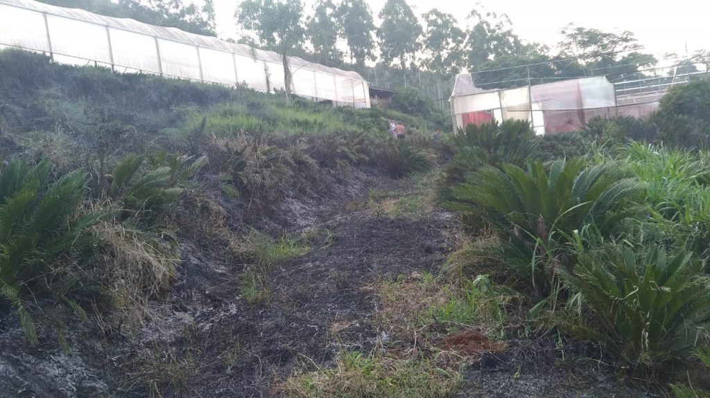 A guarnição dos bombeiros recebeu a informação, por volta das 18h40, para atender um suposto incêndio em residência na saída para linha Fatima, interior de Itá. Chegando no local foi verificado que era um incêndio em vegetação rasteira que se alastrou para a lateral de uma estufa.