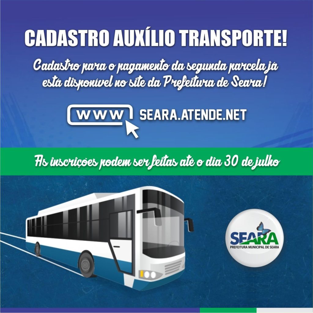 A Prefeitura de Seara e Secretaria da Educação informam que o cadastro para o pagamento da segunda parcela do auxílio transporte já está disponível no site da Prefeitura de Seara desde o dia 1 de junho.