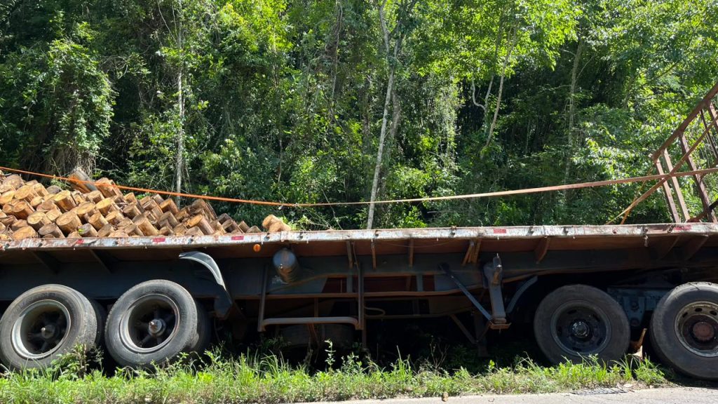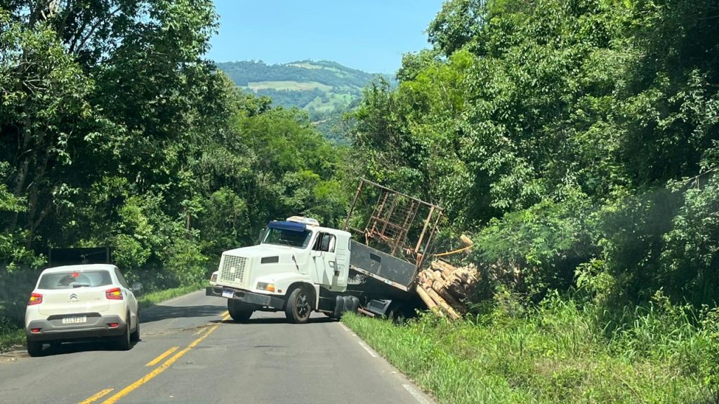 Um caminhão carregado com toras de madeira, que se deslocava de Seara em direção a uma empresa em Arvoredo, saiu da pista na SC-283. O local do ocorrido é nas proximidades de linha Chapada, interior de Arvoredo. O fato ocorreu no início da tarde desta segunda-feira, 20.