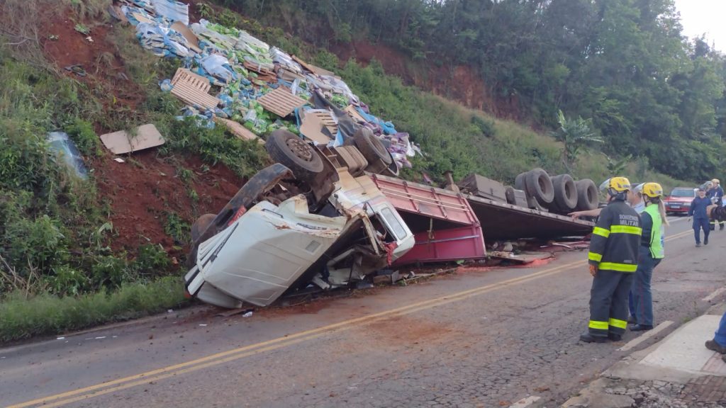 O motorista de uma carreta do Rio Grande do Sul ficou ferido em um acidente registrado por volta das 17h da quinta-feira, dia 18, em Seara.