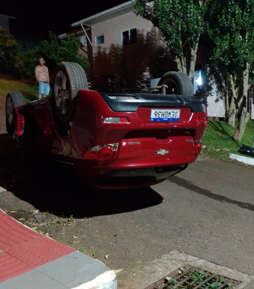 Um acidente de trânsito foi registrado no começo da noite desta sexta-feira, 22 de setembro, na Rua Argentina, Bairro das Nações, em Seara. Foi o capotamento de um veículo Cruze.