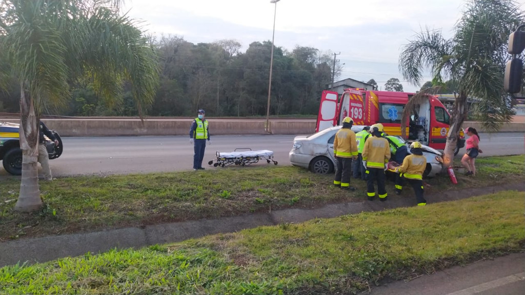 Carro capota na BR-480 em Chapecó