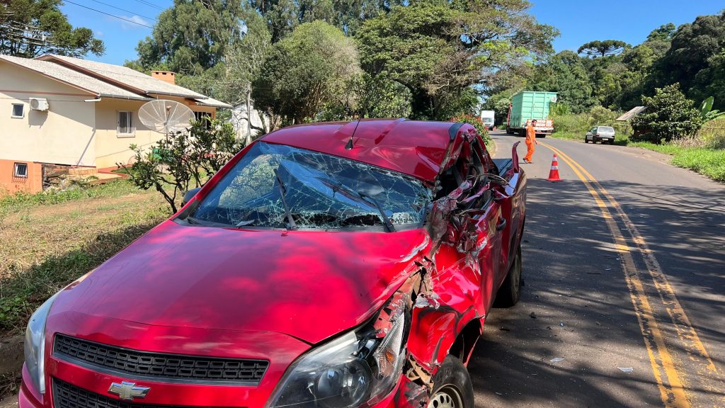 Por volta das 14h desta quarta-feira, 20, um veículo Chevrolet/Montana colidiu com uma carreta que transportava uma peça industrial gigante. O acidente ocorreu na SC-155, entre Seara e Xavantina, próximo ao trevo do Contorno Viário.