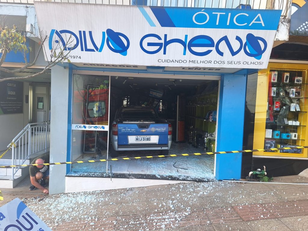 Um acidente de trânsito inusitado foi registrado no começo da manhã desta terça-feira, 26 de novembro, em Seara. O condutor de um veículo Montana com placas de Chapecó perdeu o controle do carro e invadiu uma loja. Ele fazia o sentido Anita Garibaldi/Rua do Comércio.