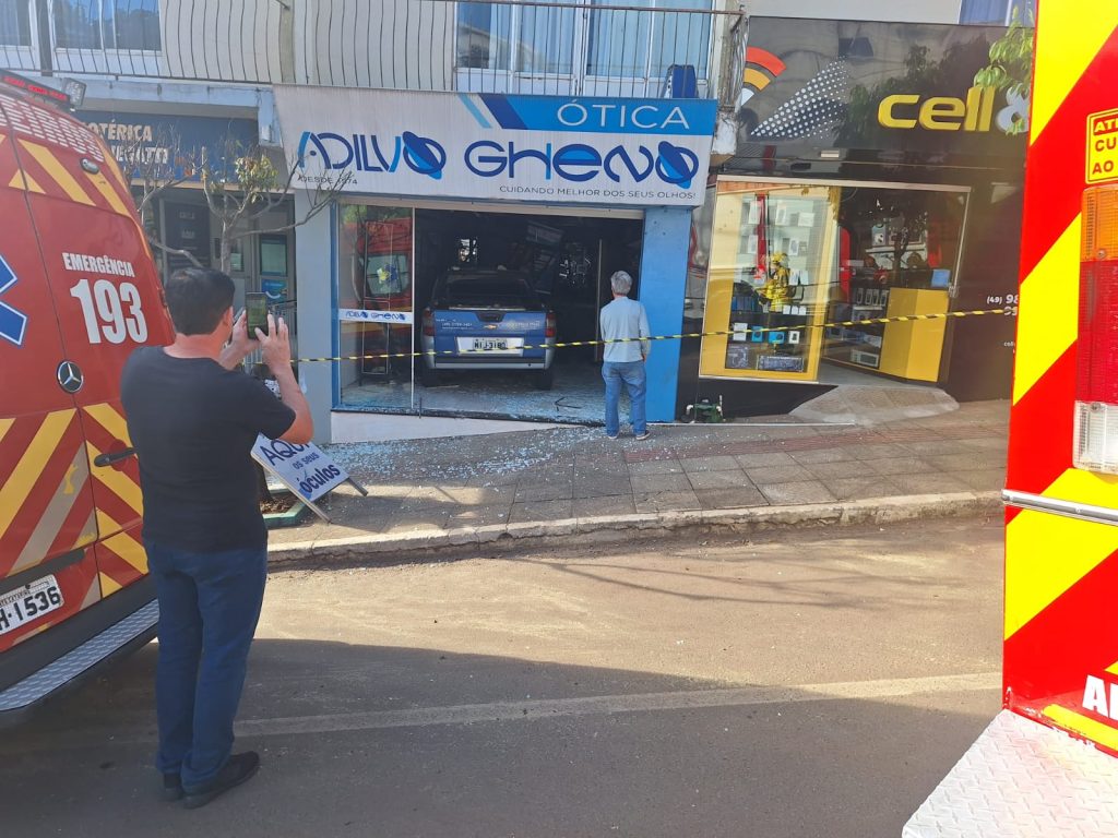 O acidente aconteceu na Rua do Comércio. A reportagem da Belos FM ouviu uma pessoa que estava no veículo. Segundo o homem, o condutor teria passado mal ao volante. O carro destruiu a porta de vidro e invadiu a loja Gheno, ao lado da Lotérica Menegatti. Não havia ninguém na loja no momento do acidente.