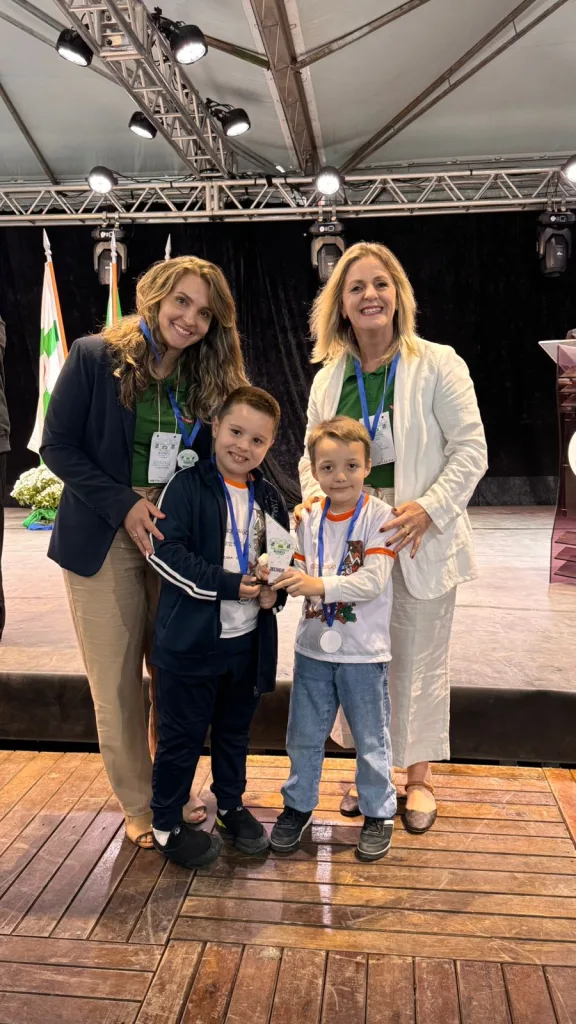 O CEI Sete Anões de Seara conquistou o Destaque em Conteúdo Matemático na 40ª Feira Catarinense de Matemática, realizada na cidade de Pouso Redondo. O projeto “Desvendando Sequências e Padrões”, desenvolvido pela Professora Regina Giombelli, com coordenação da Diretora Noili Gomann, foi apresentado pelos alunos Mateus Sczesny e Bernardo Griebeler, do Pré II Vespertino.
