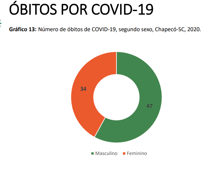 Em Chapecó, a maioria das mortes por coronavírus é de homens (47). Os outros 34 óbitos foram de mulheres.
