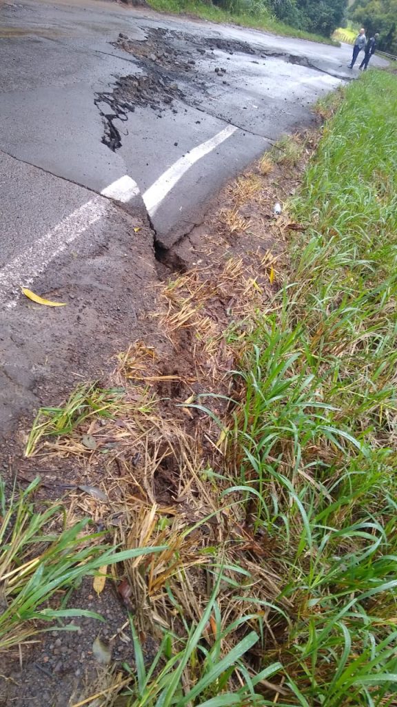As fortes chuvas dos últimos dias comprometeram a SC-155. As fotos abaixo mostram que houve deslizamento e que em uma descida entre Xavantina e Xanxerê, o asfalto quebrou: