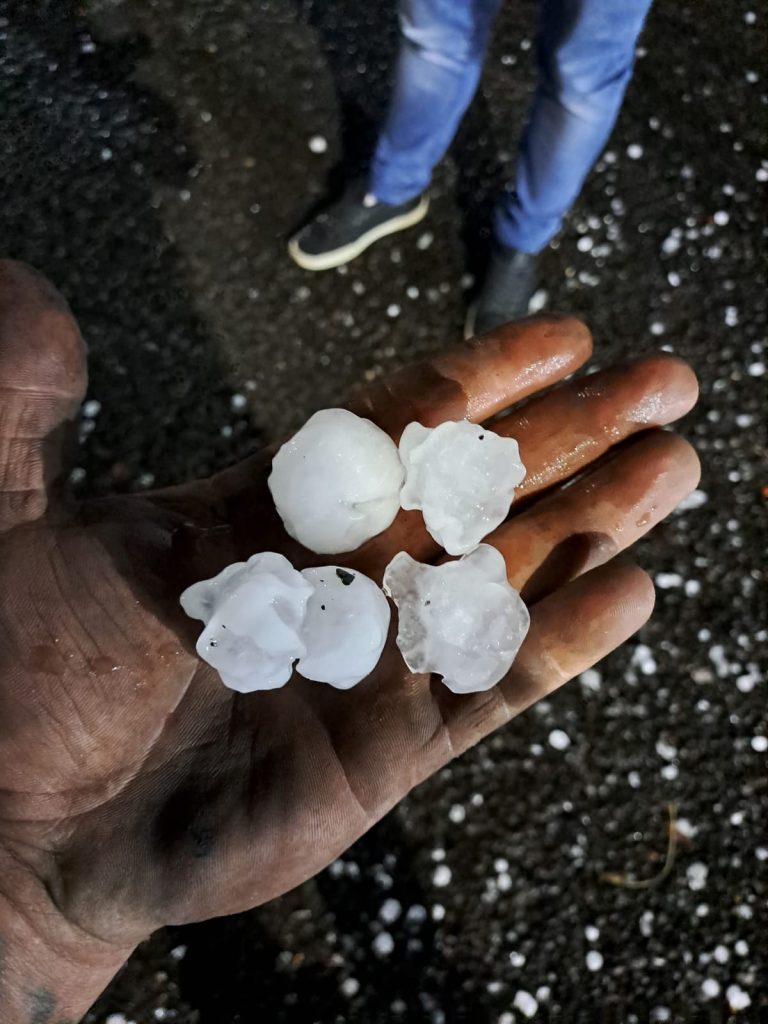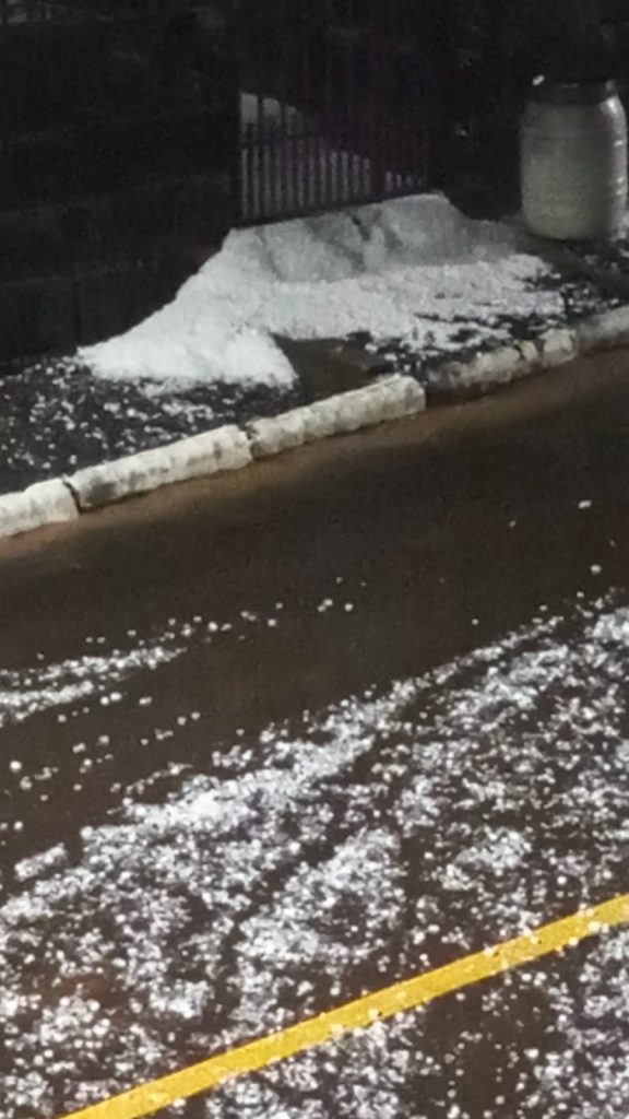 Já o granizo foi registrado em vários municípios, como Seara e Itá. Cordilheira Alta foi uma das cidades onde o fenômeno aconteceu com maior intensidade.