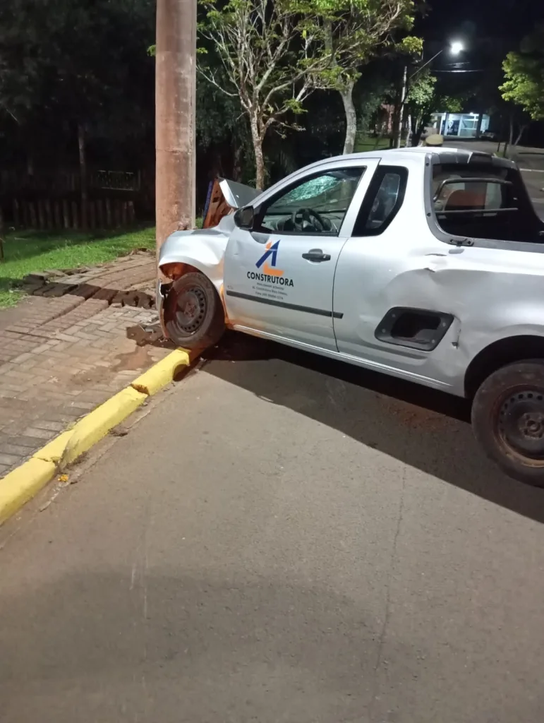 A ocorrência aconteceu por volta das 00h50, na Rua Um, região central da cidade, e mobilizou o Corpo de Bombeiros após acionamento via COBOM. O sinistro foi classificado como colisão em objeto fixo, envolvendo uma GM Montana.