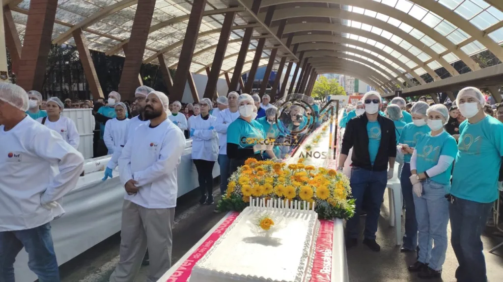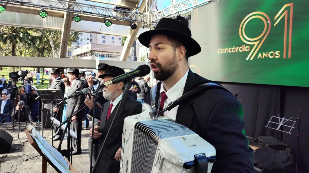Concórdia celebra 91 anos com bolo, mortadela e música na Rua Coberta