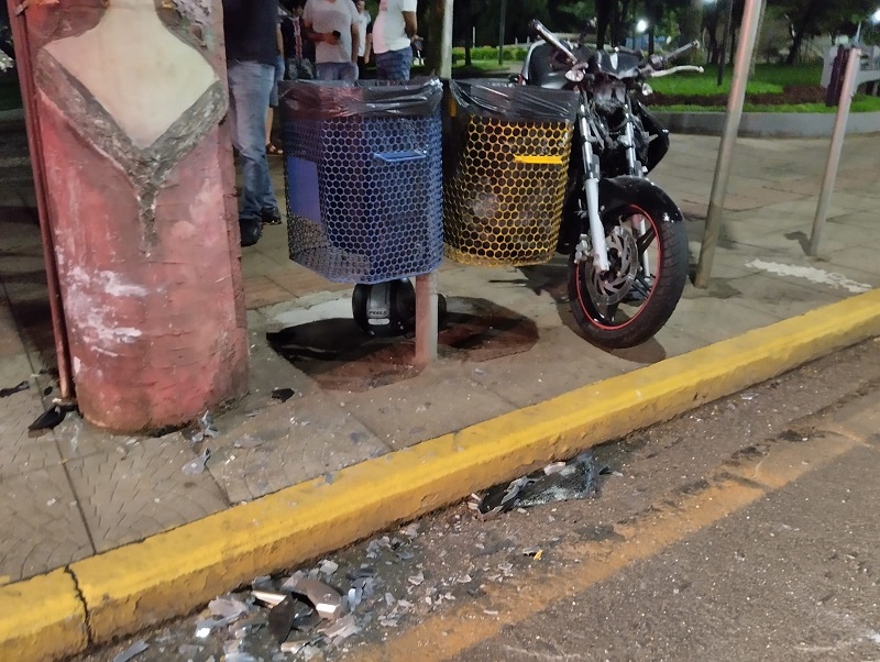 Bombeiros Voluntários e Polícia Militar atenderam acidente de trânsito no centro de Concórdia às 23h35 desta quinta-feira (09). Foi um choque de moto em poste. O motociclista de 20 anos foi conduzido ao Hospital São Francisco bastante machucado. Ele apresentava fraturas expostas em membro inferior e membro superior, trauma no tórax e suspeita de hemorragia interna.