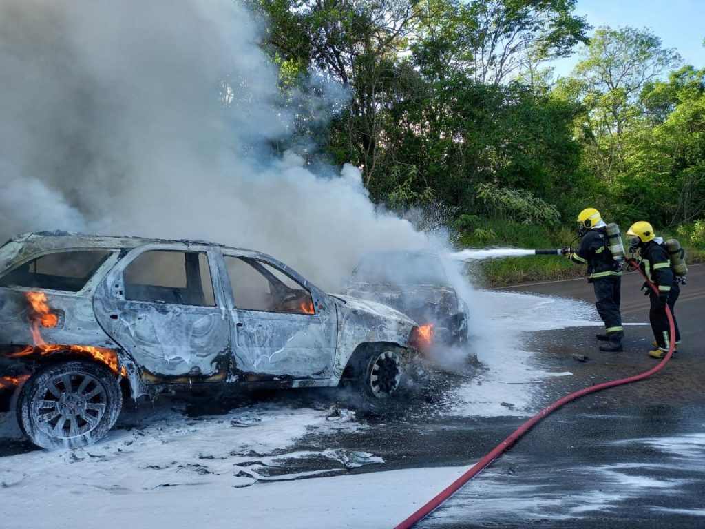 Dois automóveis ficaram destruídos pelas chamas após um acidente de trânsito por volta das 6h50 desta quarta-feira (28), na SC-157, na Linha Sede Trentin, no interior de Chapecó, em direção ao município de Paial. Ninguém ficou ferido.
