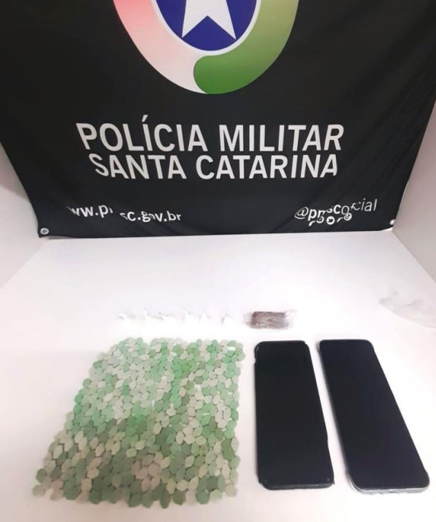 O homem que estava com a mochila ao ser questionado relatou que seu colega pediu para que fosse busca-la no veículo e que não era de sua propriedade. Foram apreendidos no local 342 comprimidos de ecstasy, 7,8g de maconha, 6,3g de cocaína e os aparelhos celulares dos envolvidos.