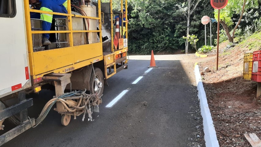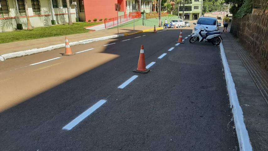 Pintura da sinalização horizontal em ruas da cidade de Seara e e no acesso a Nova Teutõnia