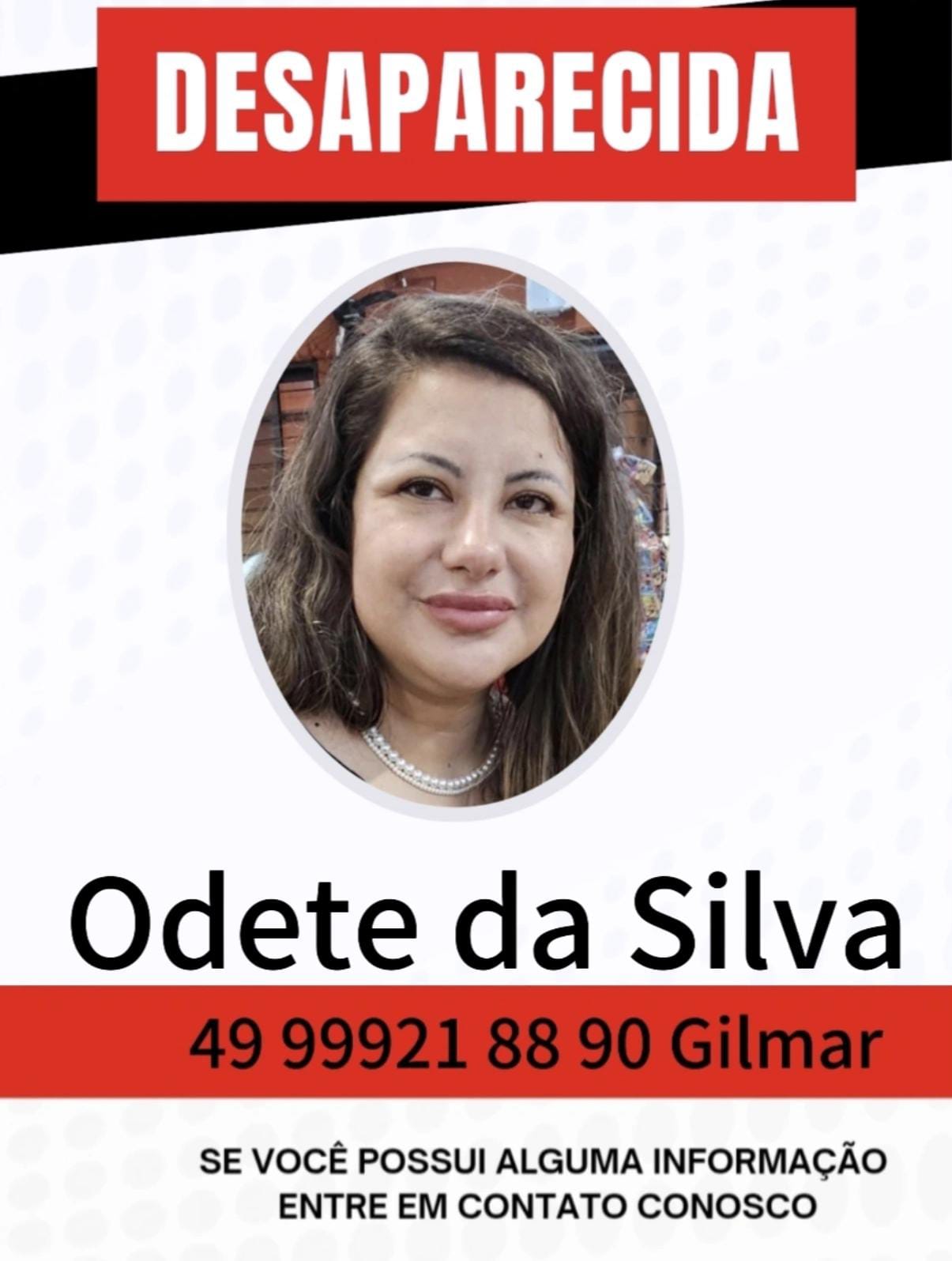A família pede que, quem tiver qualquer informação sobre o paradeiro de Odete da Silva, entre em contato através do número 49 99921 88 90 com Gilmar.