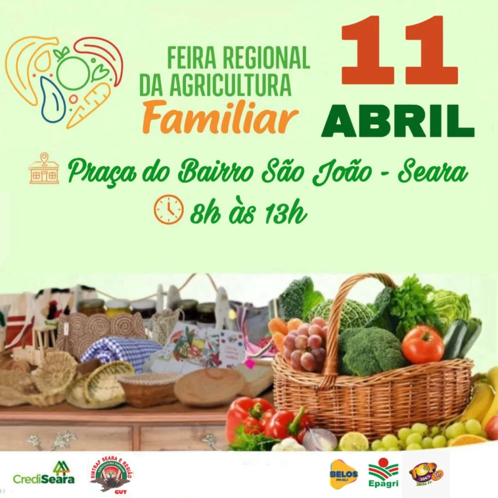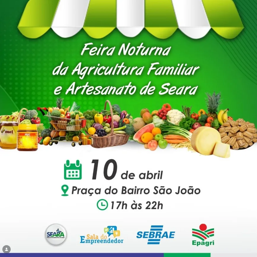 A Feira Noturna e a Feira Regional da Agricultura Familiar e Artesanato acontecem neste fim de semana na Praça Henriqueta Zanuzzo, em Seara. A 14º edição noturna será na sexta-feira, 10 de abril, das 17h às 22h. Já a Feira Regional será no sábado, 11 de abril, das 8h às 13h.