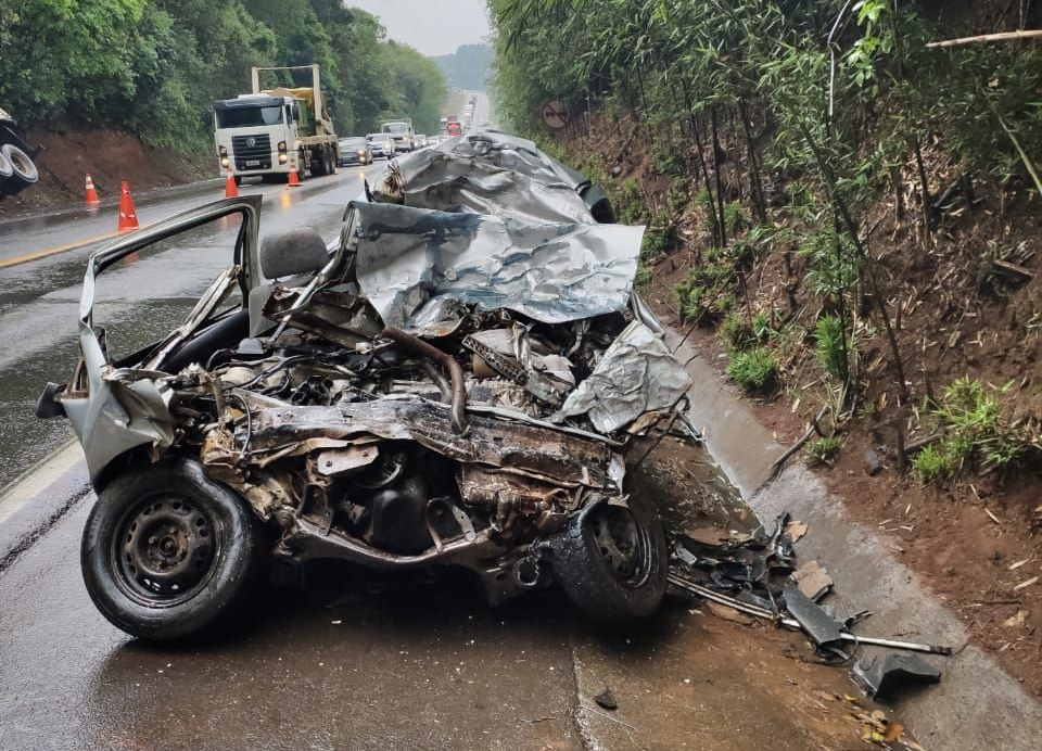 Segundo informações da Polícia Rodoviária Federal (PRF), o acidente envolveu um Volkswagen/Gol, de Maravilha (SC) e uma carreta Scania/R114, placa de Chapecó (SC). De acordo com o Corpo de Bombeiros, duas pessoas que estavam na carreta, tiveram ferimentos leves, já o condutor do gol morreu ainda no local.