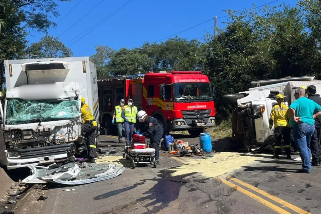 Um grave acidente de trânsito foi registrado por volta das 11h20 desta terça-feira, 28, na SC- 155, no município de Xavantina. A colisão envolveu dois caminhões sendo que um deles capotou deixando o bloqueado em ambos os sentidos.