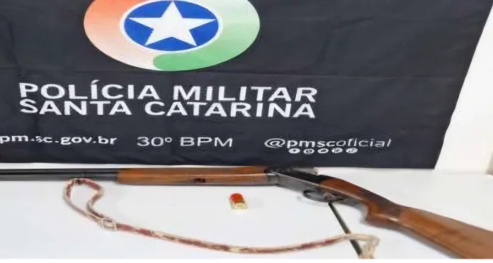 Ao chegar ao local, a guarnição conversou com a vítima, que relatou que o suspeito havia chegado à residência e, bastante alterado, passou a ameaçar sua esposa, dizendo que iria matá-la. Em seguida, o homem começou a danificar a casa e estava de posse de uma espingarda calibre 12.